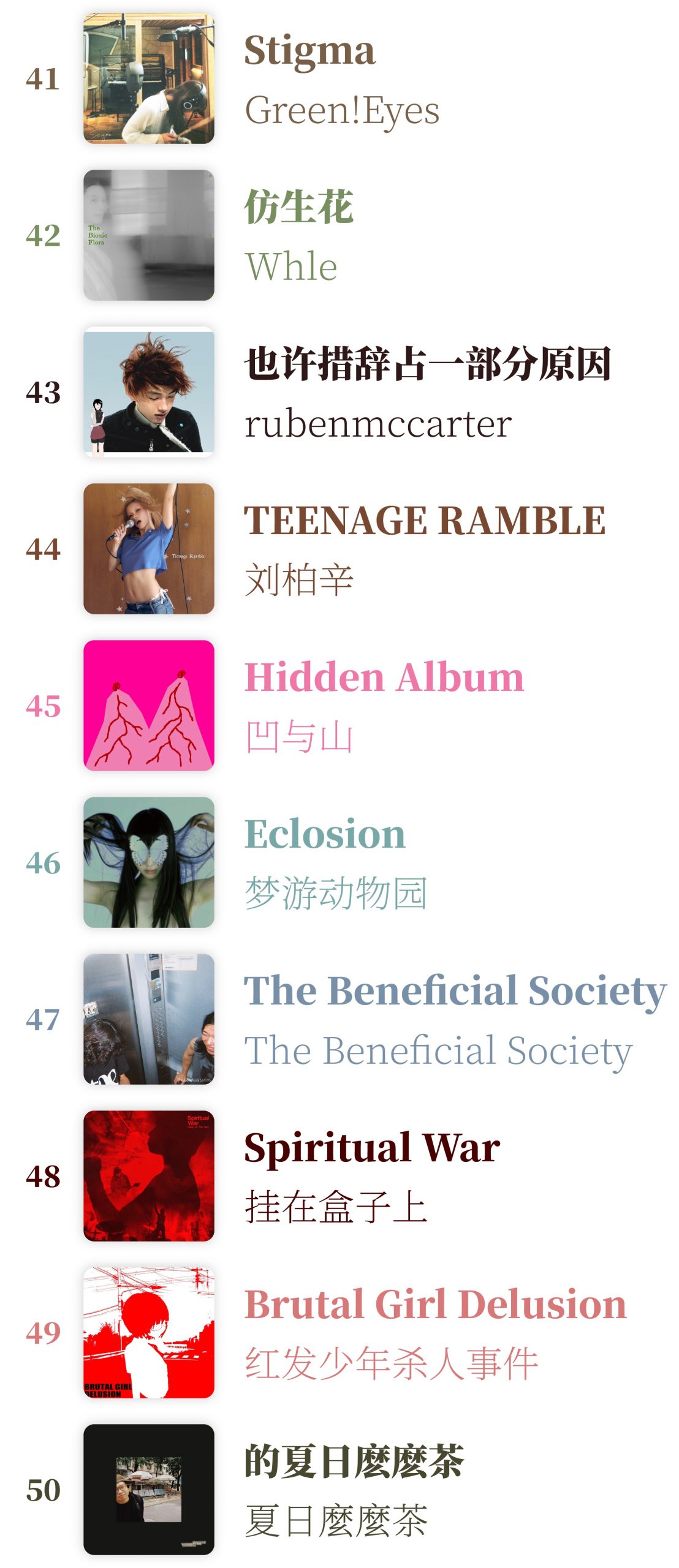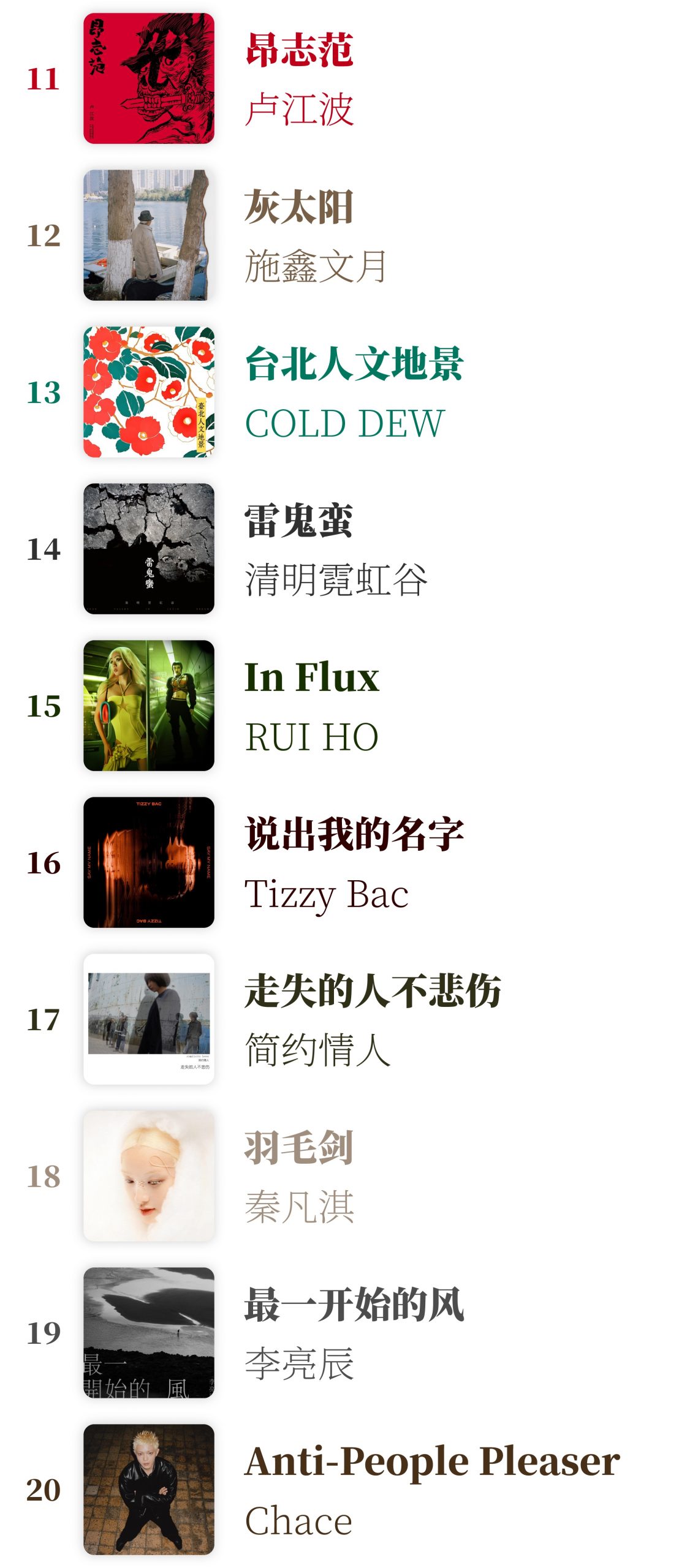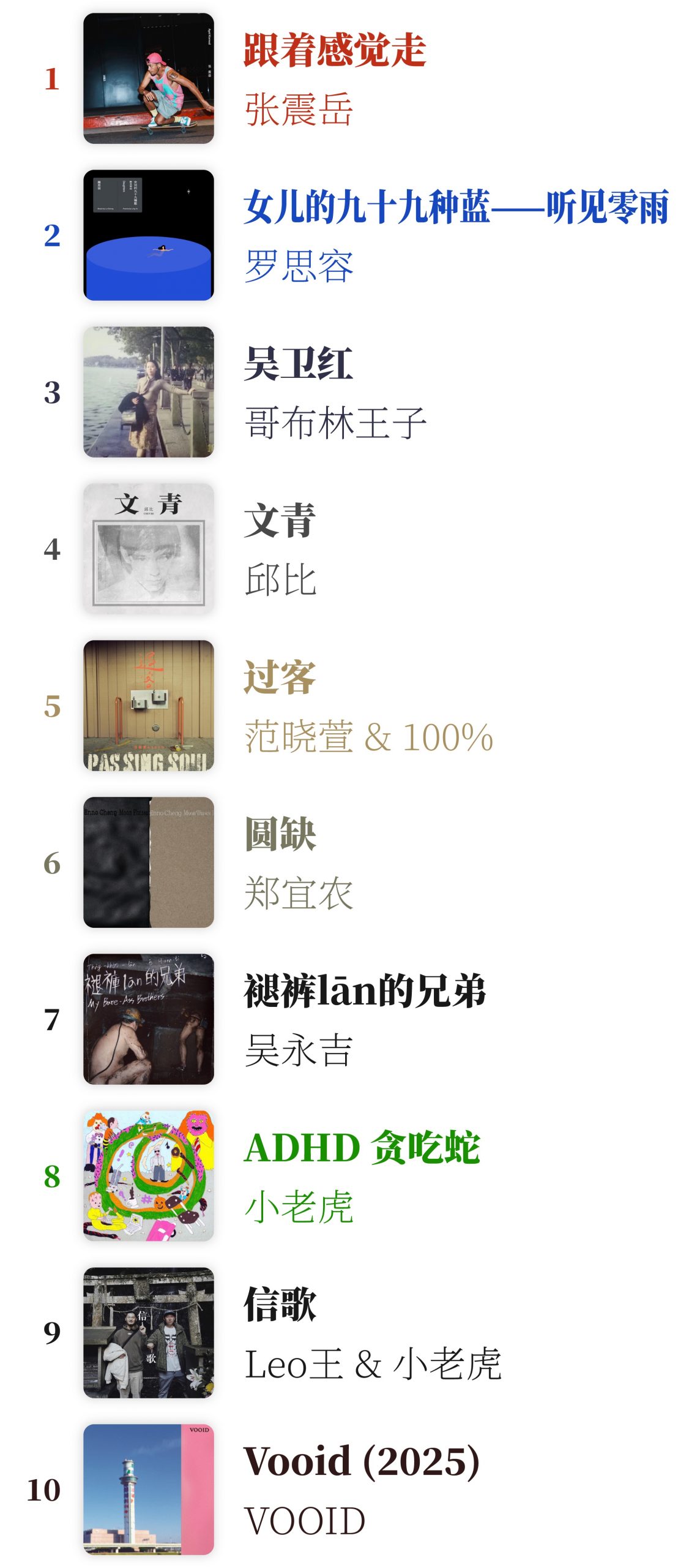 马勺音乐榜 2025年50佳华语专辑