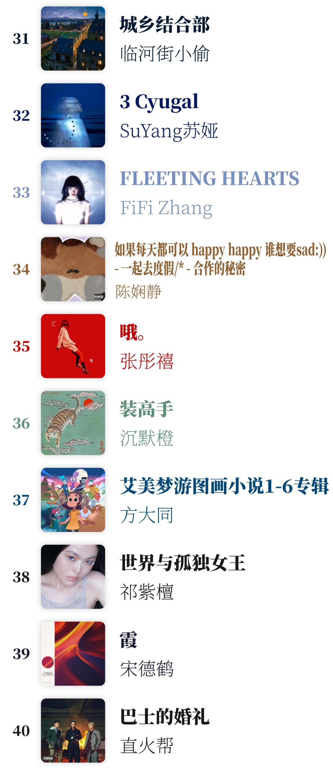 每年都说是华语音乐的小年,但是今年我剪视频的时候,虽然很累,还是觉得很开心,因为又有机会听了一遍这些优秀的作品(当然还是很累,当UP主可太难了!)。希望大家能从中找到你的所爱,希望新的一年我们都能打开耳朵、打开心,去更亲密地、具体地感受这个世界,感受我们身边的声音。